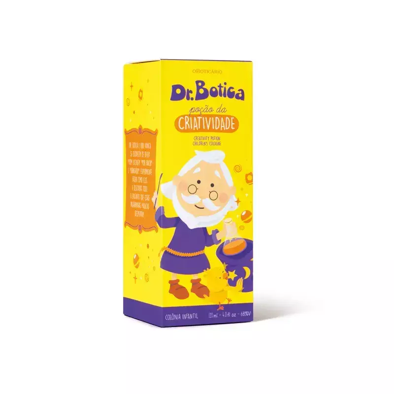 Dr. Botica Poção da Criatividade Colônia Infantil Fragrância frutal possui o exclusivo acorde Solar Frozen que, que contém notas de manga, laranja-lima e melão. O resultado dessa mistura é uma fragrância divertida, brilhante, energizante e fresca.