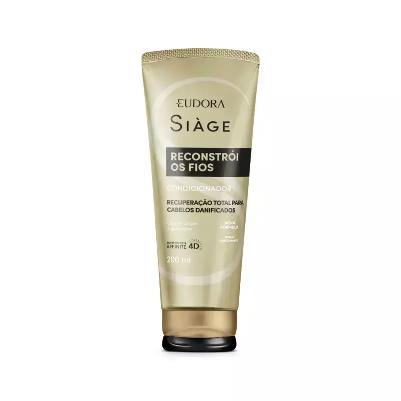 Eudora Siàge uniu a força da natureza ao poder da ciência e criou a exclusiva biotecnologia Affinité 4D. Com inteligência detectora de danos, trata os fios até a camada mais profunda, mesmo após o enxágue. A linha Siàge Reconstrói os Fios conta com uma gama completa de produtos que entregam 6x mais força, combate as pontas duplas e quebradas e recupera 1 ano de danos em apenas duas semanas de tratamento.