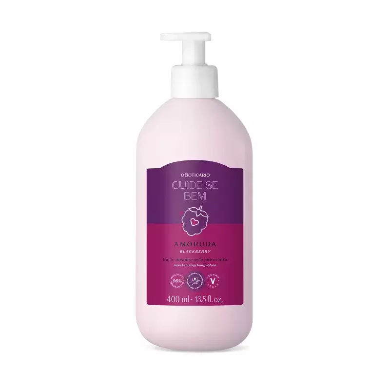 Com o cuidado e a fragrância da amora, a Loção Hidratante Desodorante Corporal Cuide-se Bem Amoruda tem textura cremosa e possui extrato da fruta, além de formar uma película protetora sobre a pele, para você viver com toda a abundância que merece e, de quebra, ficar cheirosa e hidratada.