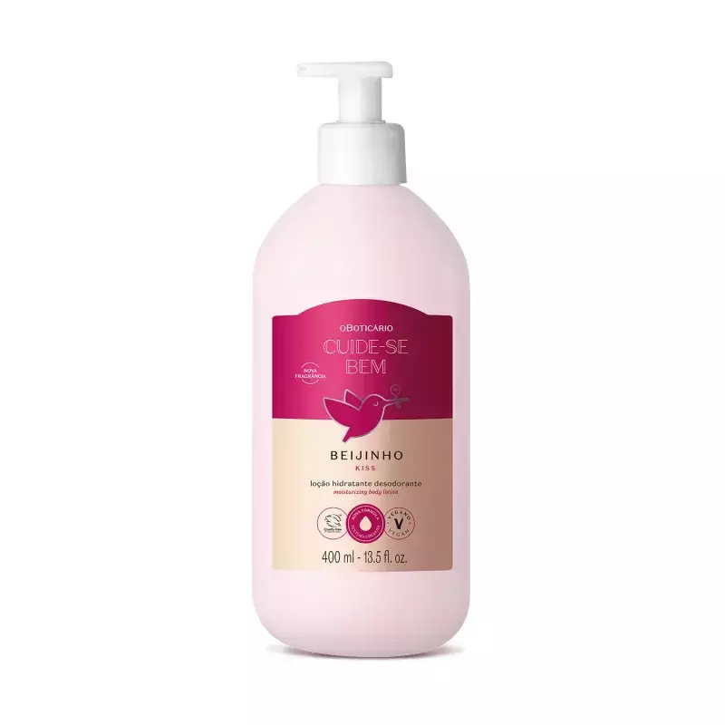Com ativos mais hidratantes, o hidratante corporal da linha Beijinho entrega muita hidratação para uma pele bem tratada na rotina.