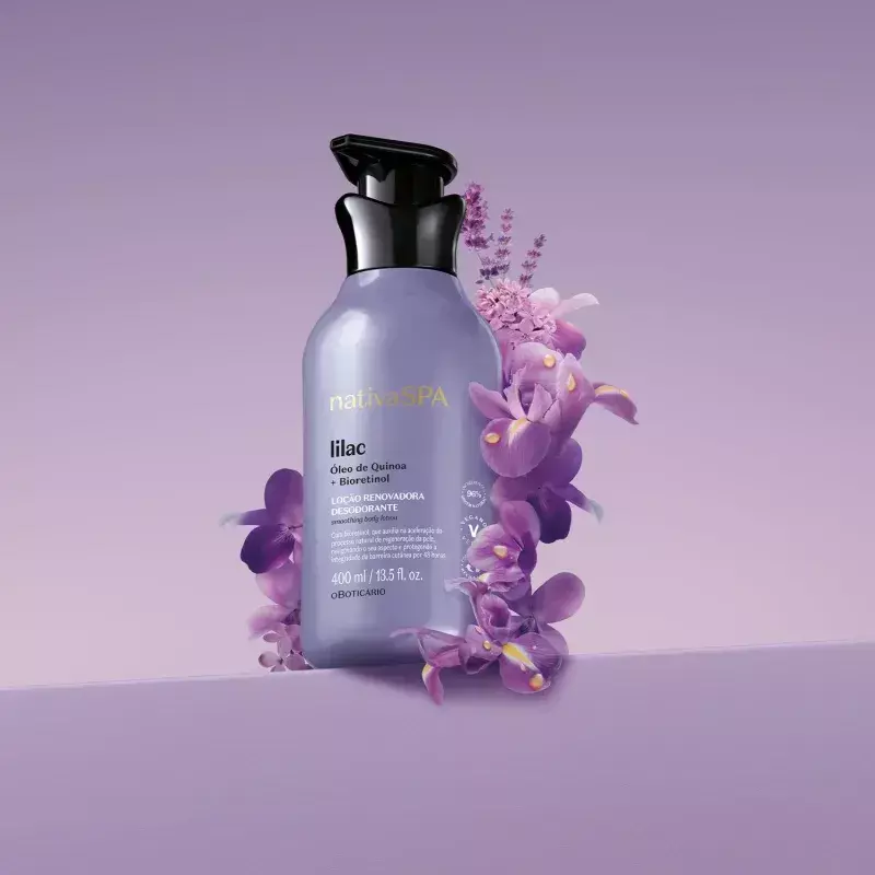 A Loção Renovadora Desodorante Hidratante Nativa Spa Lilac chegou para fazer parte do seu momento de autocuidado, para uma pele que se renova como as flores a cada temporada.