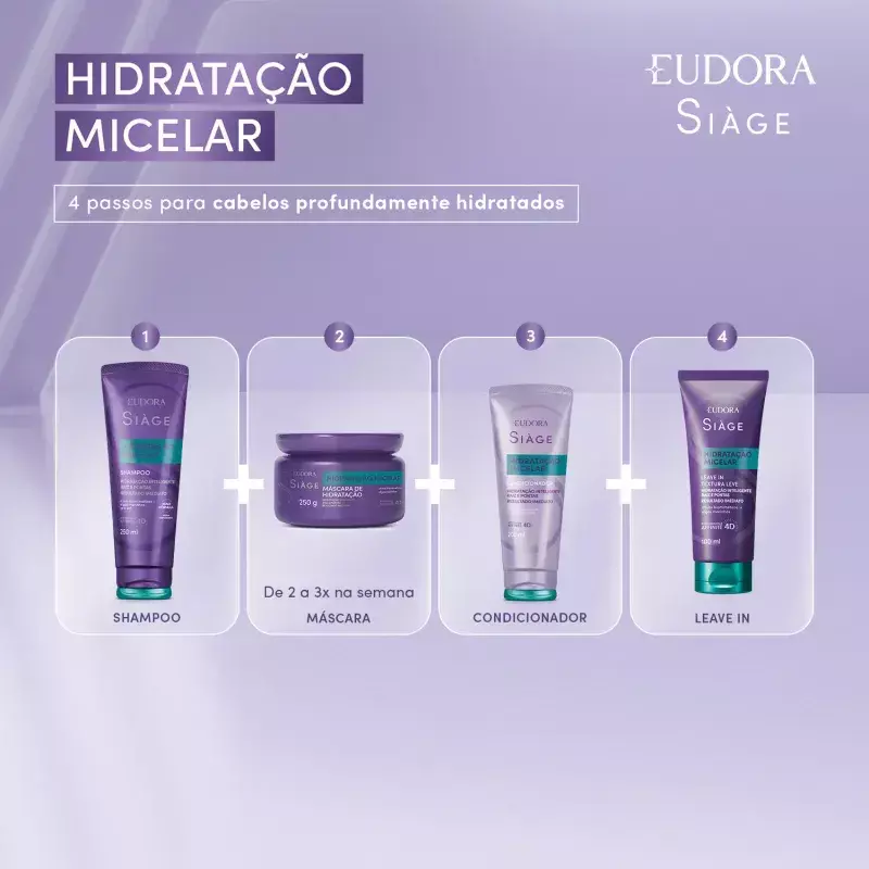 Máscara Capilar Siàge Hidratação Micelar traz hidratação profunda para seus fios. Com um exclusivo sistema micelar inteligente, ela identifica o grau de ressecamento dos cabelos e recupera os danos, agindo diretamente nas agressões. O uso do produto garante fios soltos, com um brilho saudável e 3x mais macios.