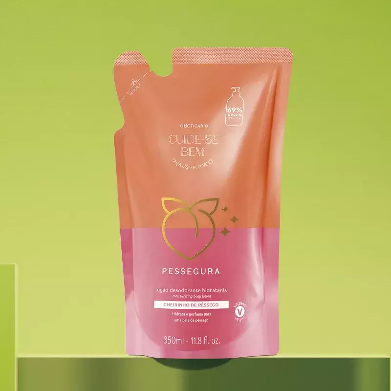 Aaah, os pequenos prazeres da vida adulta: boletos pagos, casa arrumada e pele macia igual um pêssego. E para te ajudar nisso, o Boticário apresenta o Refil Loção Hidratante Desodorante Corporal Cuide-se Bem Pessegura que é a escolha perfeita para repor o seu creme corporal favorito e deixar a sua pele hidratada do jeito que você gosta com o delicioso cheirinho de pêssego.