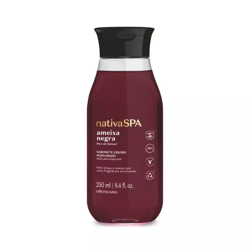 Com a fragrância da linha, este sabonete líquido Nativa Spa entrega a fragrância envolvente da Ameixa Negra em um floriental amadeirado, para uma explosão de fragrância durante o banho. Uma experiência luxuosa para fugir do dia a dia e sentir tudo o que pode sentir na máxima potência.