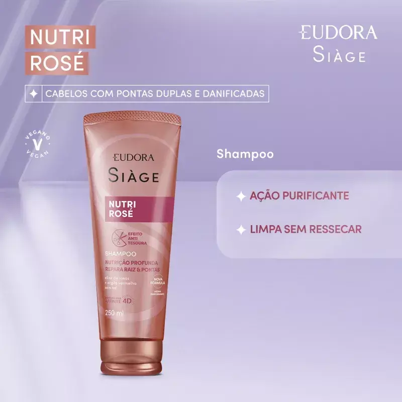 O Shampoo Siàge Nutri Rosé prepara seus fios para um resultado de salão dentro da sua rotina.